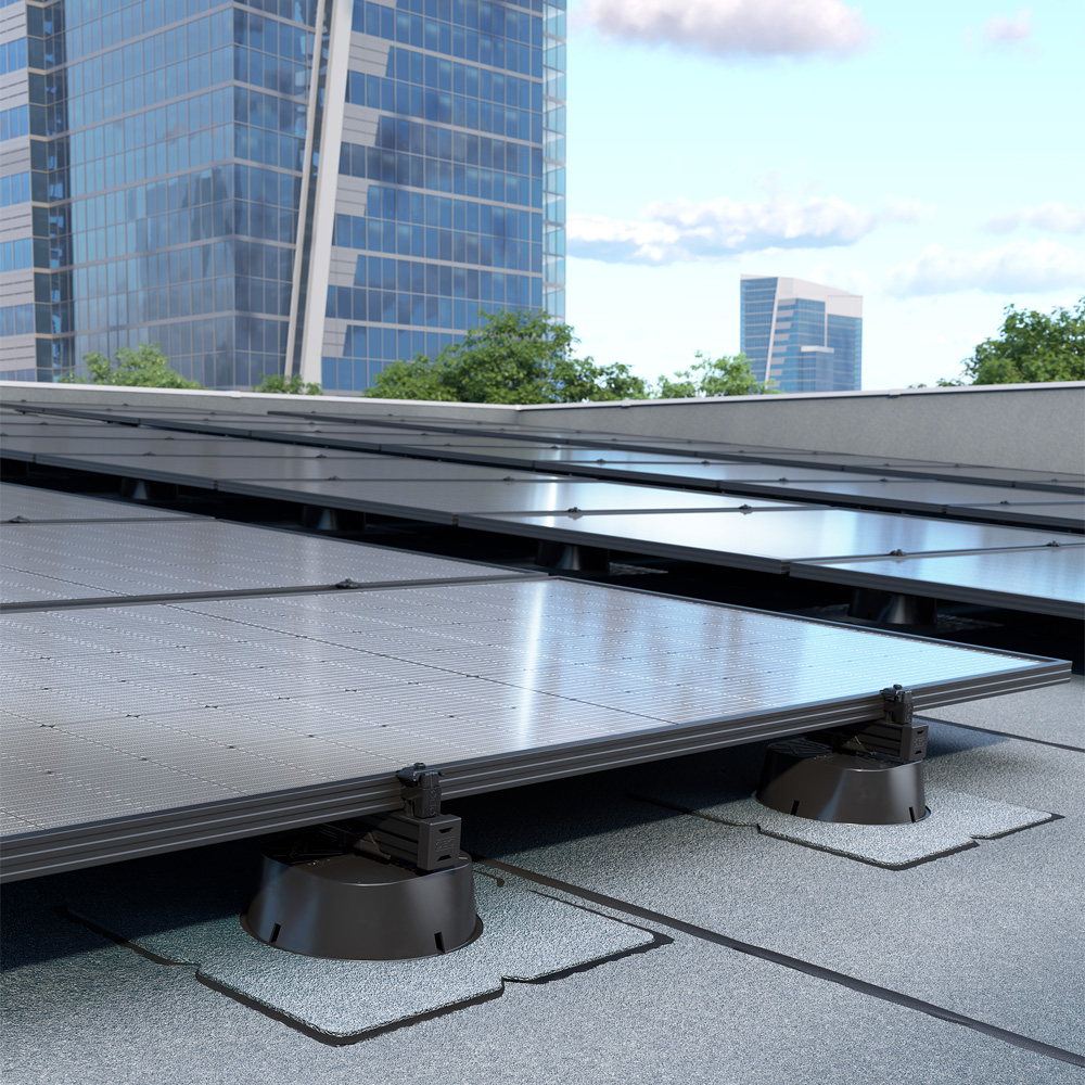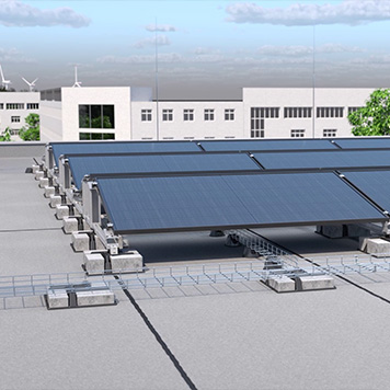 Vores Basic System til flade tage kan klare høj belastning og er hurtige at montere. Det er kendetegnet ved et integreret system til kabellægning og ballastering på samme tid. Systemkonstruktionen er mulig i trin takket være den fleksible rygning.