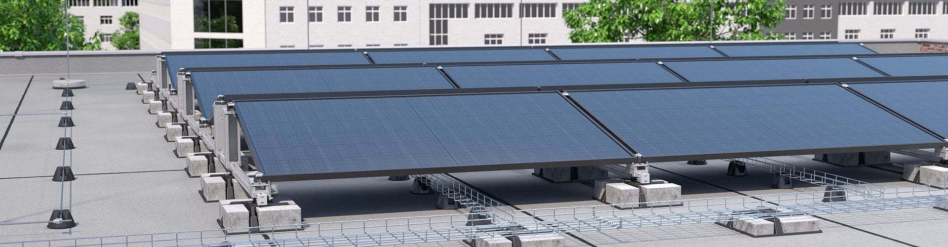 Magic PV Flat Pro-systemet til anlæg på flade tage monteres uden skruer og værktøj ved hjælp af Magic-teknologien. Et stort udvalg af kvalitetsmaterialer og maksimalt belastbare systemkomponenter danner grundlaget for et holdbart monteringssystem. Et system til kabellægning kan integreres ved hjælp af gitterbakke.