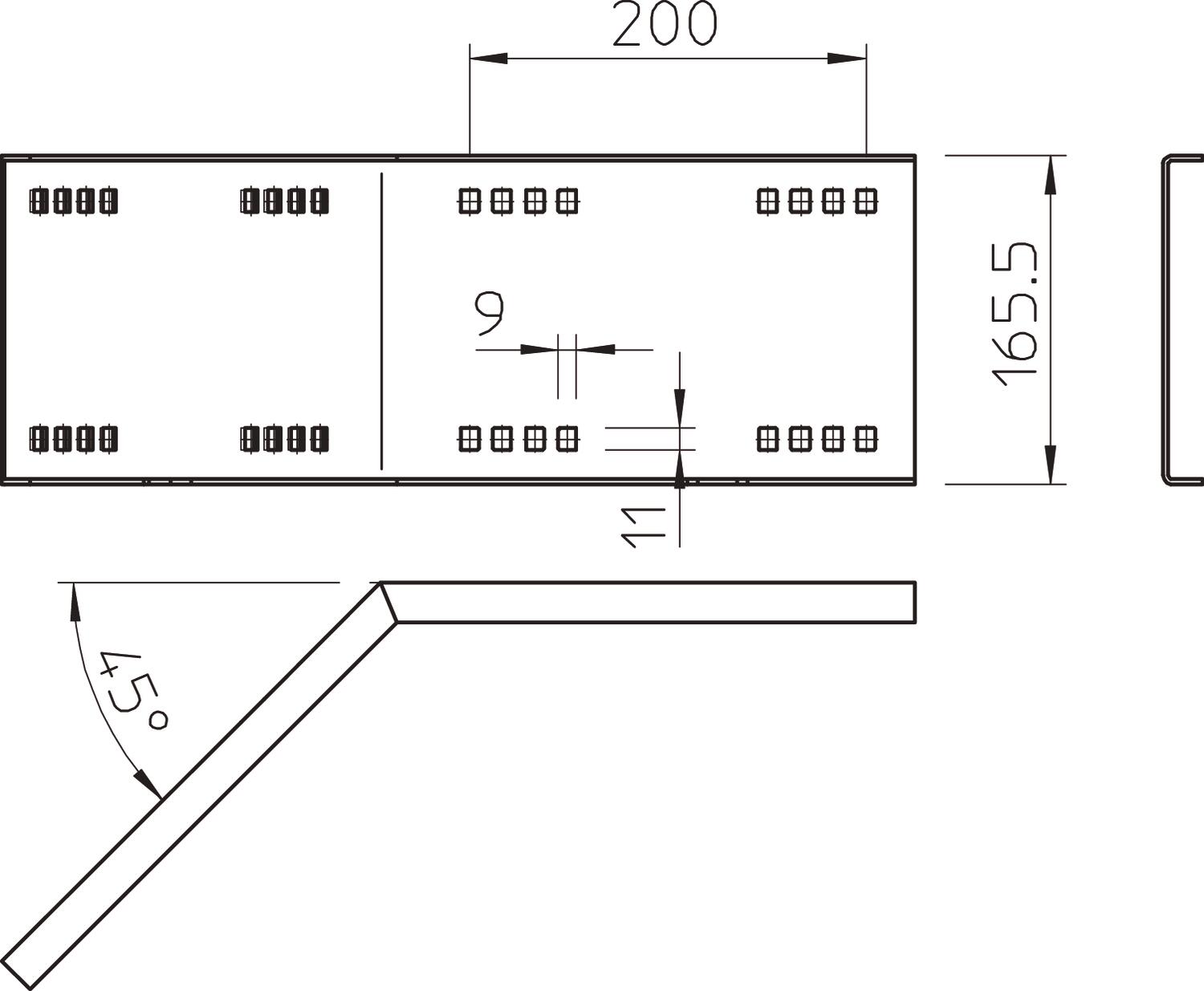Produkt beskrivelseVinkelbeslag 45°, vandret, til kabelbakker og -stiger til store afstande med en sidehøjde på 160 mm.