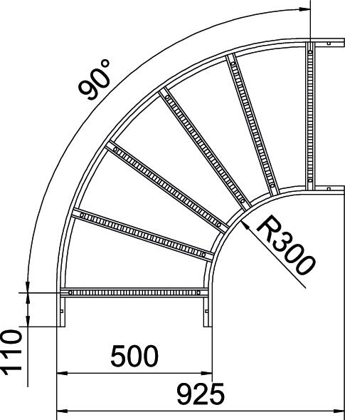 Produkt beskrivelseBøjning 90° horisontal med svejset sprosse til alle typer kabelstiger med sidehøjden 110 mm.