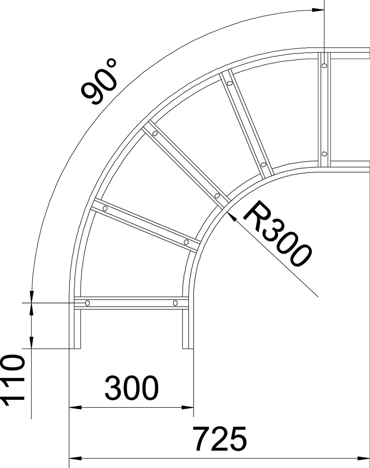 Produkt beskrivelseBøjning 90° horisontal med svejset sprosse til alle typer kabelstiger med sidehøjden 110 mm.