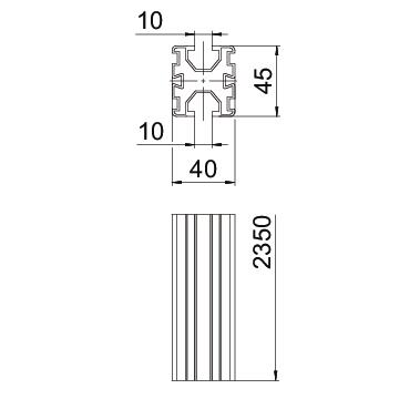 Bredde 40 mm Dimension 40x45x2350 Farve Aluminium Højde 45 mm Kabelkanal ekstraudstyr Nej Kabelkanal integreret Nej Længde 2350 mm Materiale Aluminium Modstandsmoment Wx 3680 mm³ Modstandsmoment Wy 3760 mm³ Overflade Blank - Alle typer