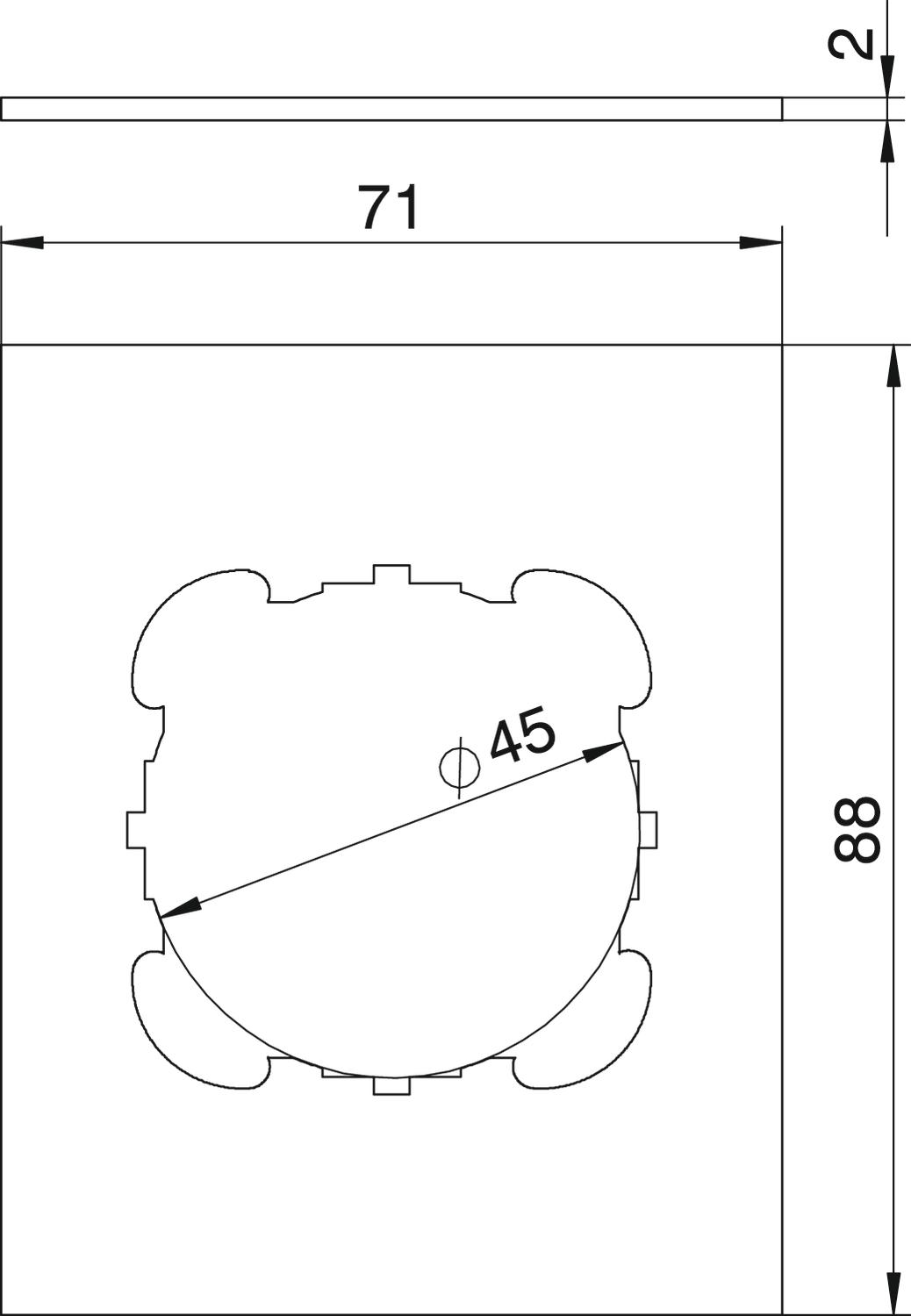 Produkt beskrivelseDækplade med 1 hul (Ø 45 mm) til en installationsenhed med bærering eller -bøjle, passer til T12L-langside (1/4-afdækning) eller til T12L-smalside (1/2-afdækning).