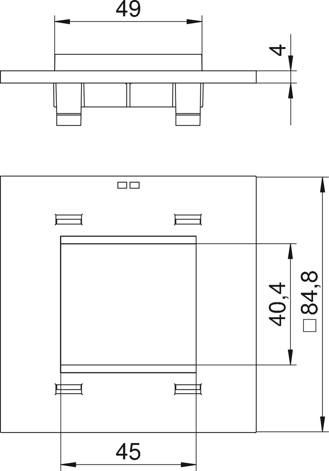 Produkt beskrivelseDækplade med firkantet åbning til en enkelt stikdåse i udførelse modul 45, passer til T4L- og T8NL-smalside eller til T4L- og T8NL-langside (1/2-afdækning).