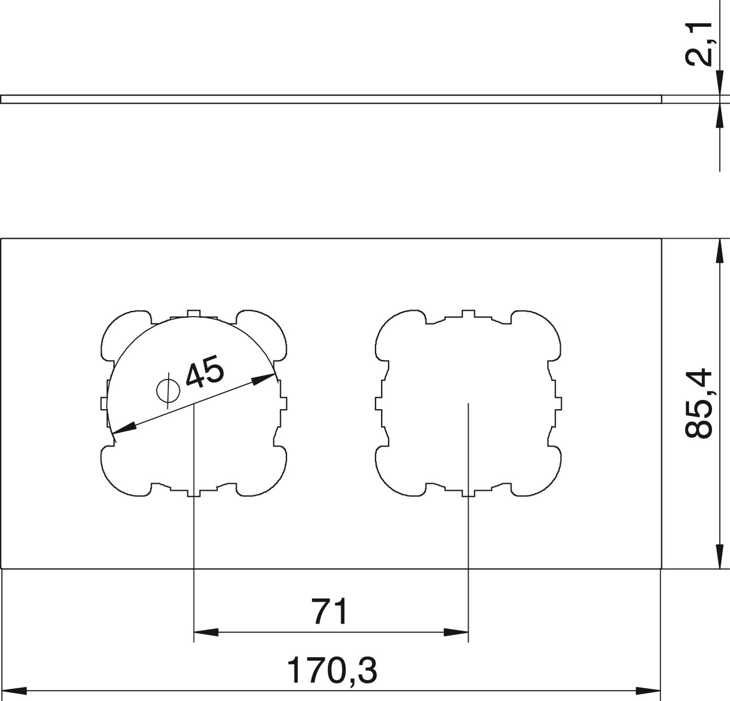 Produkt beskrivelseDækplade med 2 huller (Ø 45 mm) til 2 installationsenheder med bærering, passer til T4L- og T8NL-langside.