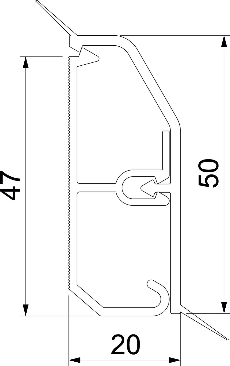 Antallet af faste skillevægge 1 Beskyttelsesfolie Nej Beskyttelsesgrad IK-kode IK06 Bredde 50 mm CO2 fodaftryk (GWP) fra vugge til port 0,7507 kg CO2e / 1 meter Dekoration Uden Effektivt tværsnit 580 mm² Farve cremehvid; RAL 9001 Halogenfri Nej Højde 20 mm Kapslingsklasse IP40 Længde 2000 mm Materiale PVC Med liste til tæppe Nej Monteringshul i bunden Ja Temperaturanvendelsesområde maks. 60 °C Temperaturanvendelsesområde min. -5 °C Tætningslæbe dæksel Væg/gulv - Alle typer