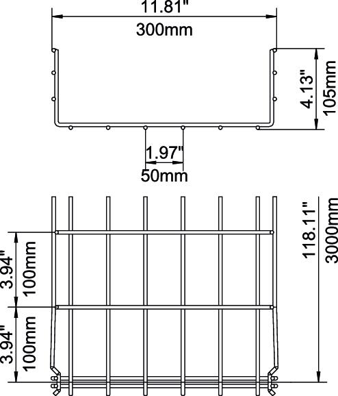 Produkt beskrivelseGitterbakke med tilpasset beslag i sidehøjden 105 mm.