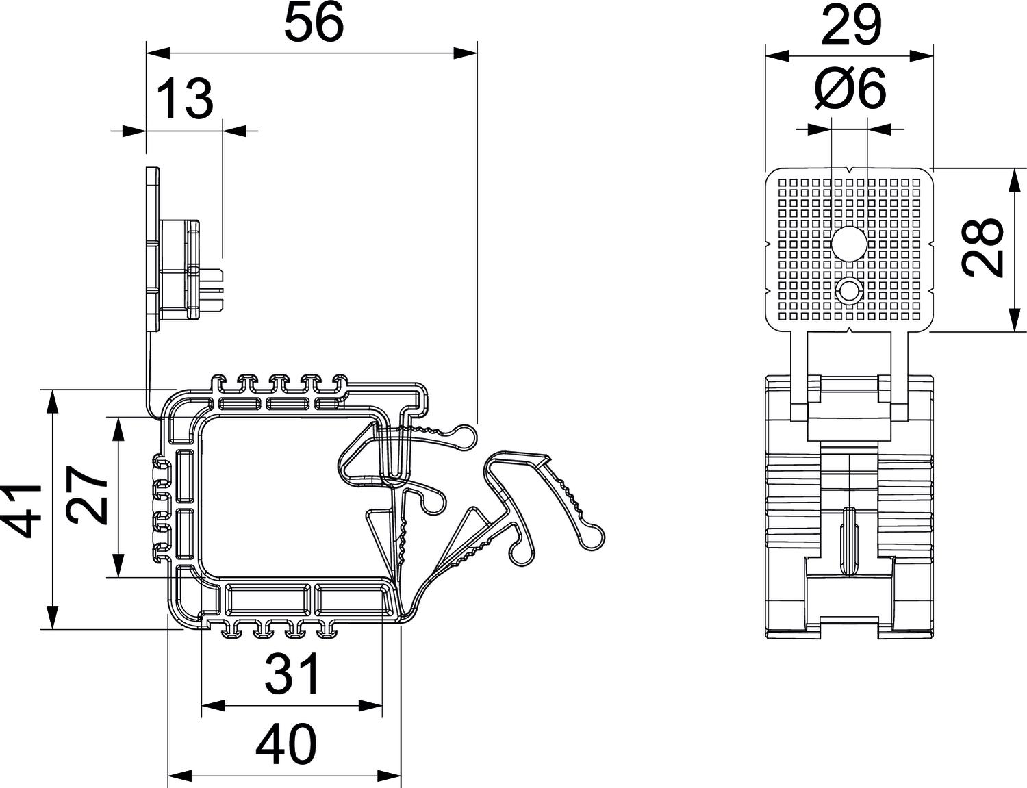 Produkt beskrivelseSamlebeslag med formstøbt fastgørelseselement, til montering af op til 10 NYM 3x1,5 mm² kabler på væggen eller i loftet. Fastgørelse med slagdyvel eller indstikningsdyvel. Også egnet til fastgørelse med gas- og batteridrevet indstillingsværktøj fra Bosch, Fischer og Spit (indvendig næsediameter Ø 7 mm). Fastgørelseshul Ø 6 mm. Anbefalet monteringsafstand ved fuld belægning 250-400 cm, afhængigt af de gældende nationale specifikationer/standarder.