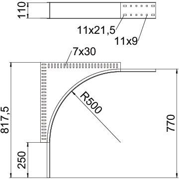 Produkt beskrivelseHjørnemonteringsstykke til kabelbakker og -stiger med stor spændvidde med en sidehøjde på 110 mm.