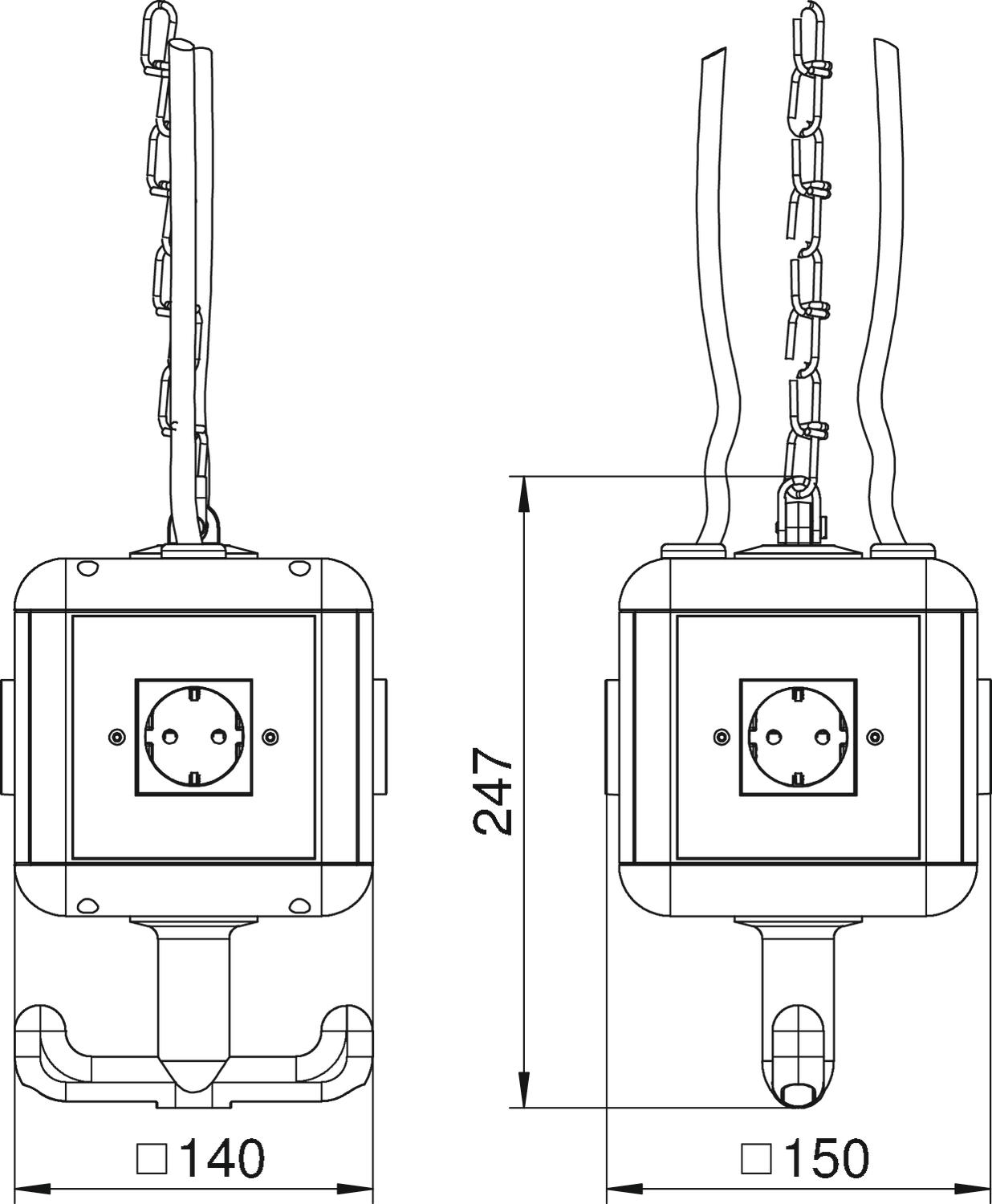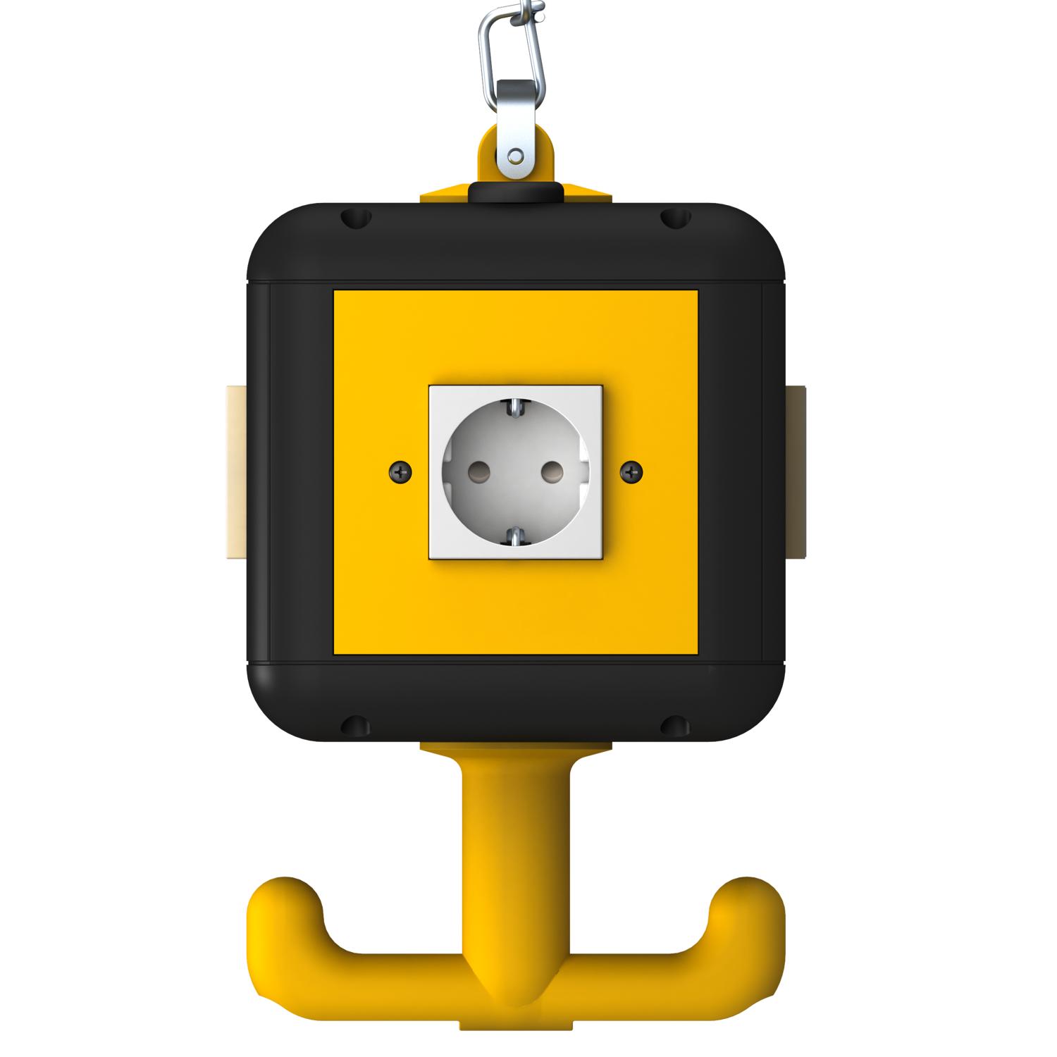 Produkt beskrivelseDåse prækonfektioneret og færdigt forbundet med ophængningsøse, gribekrog og 4 dækplader.