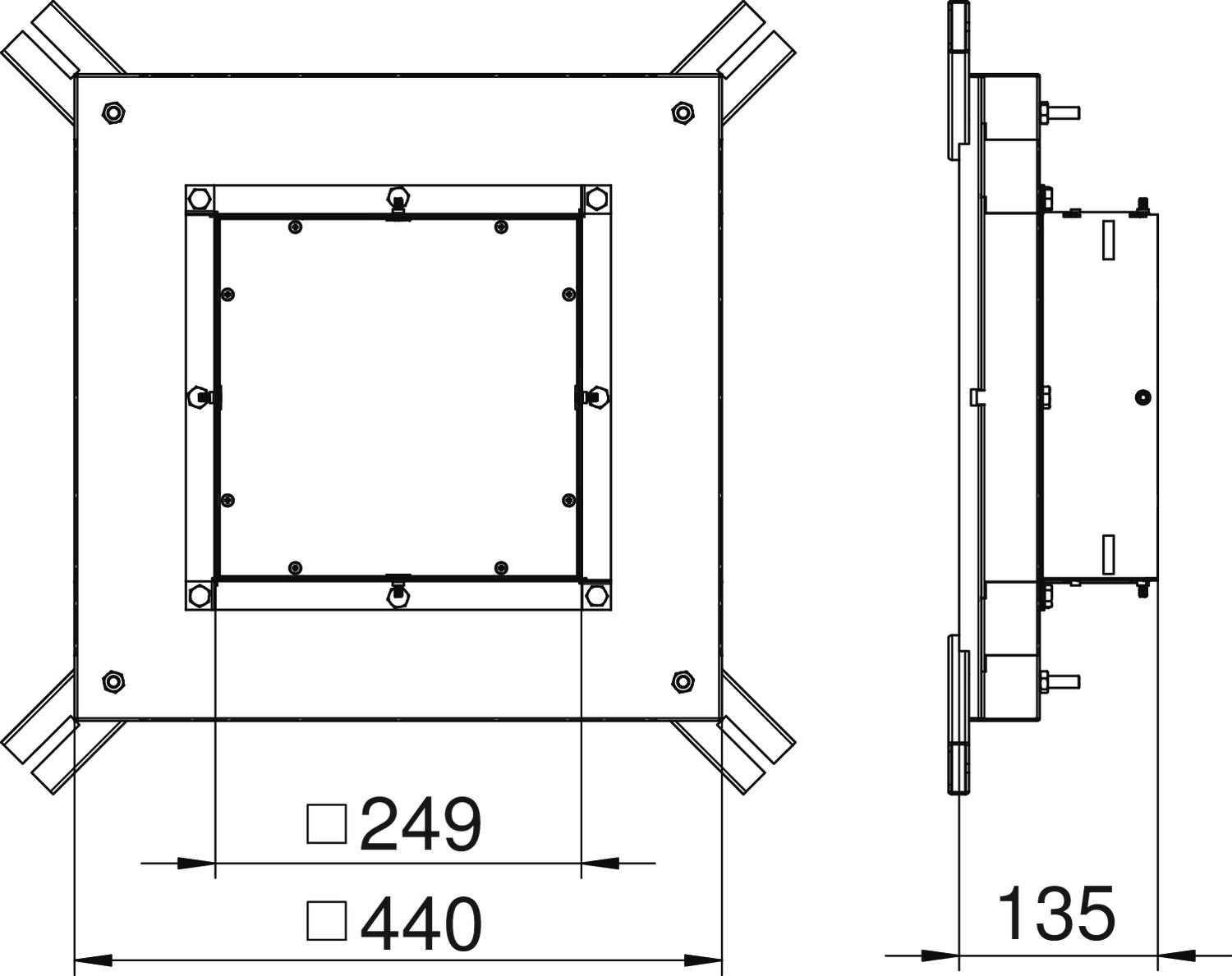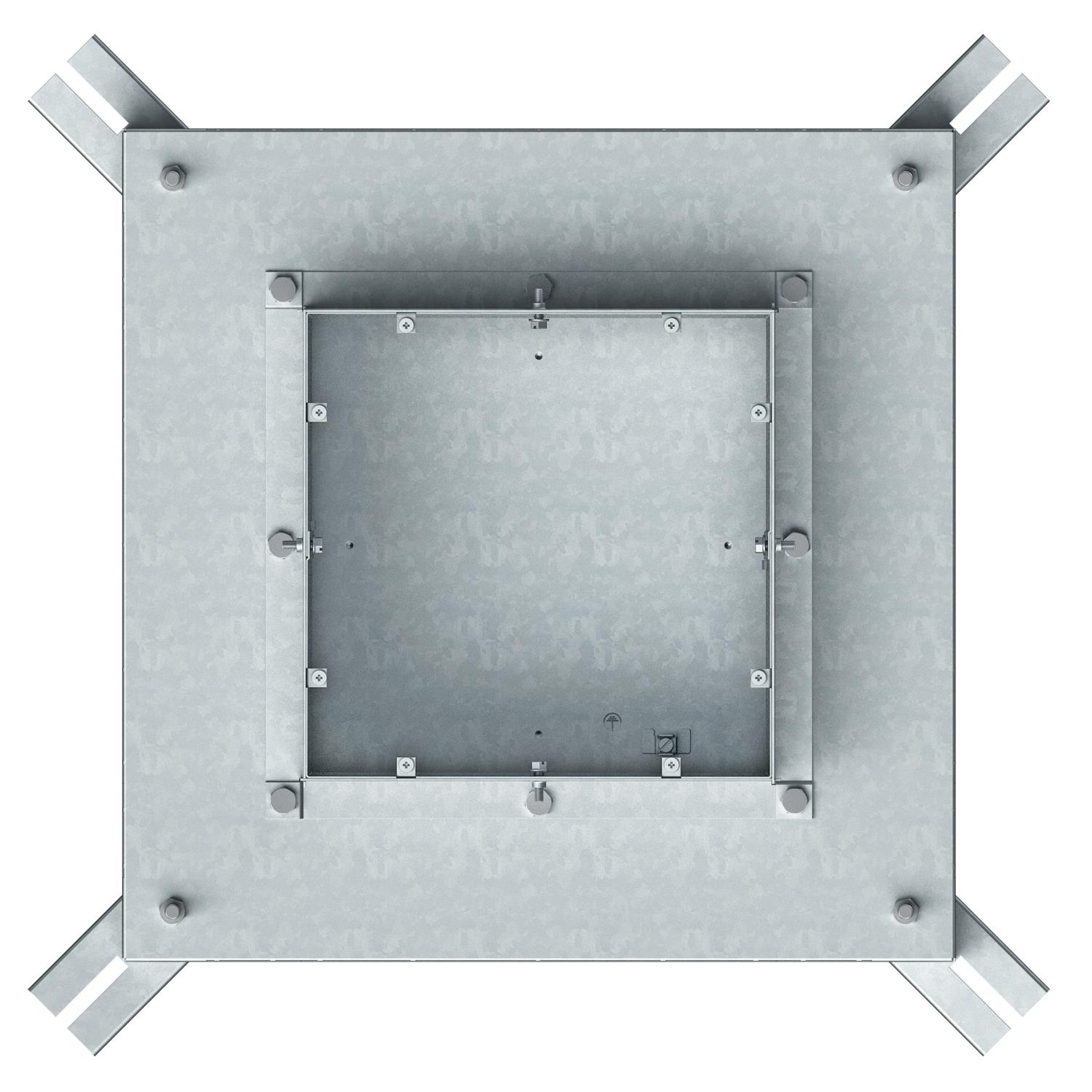 Produkt beskrivelseIndmuringsdåse til kanalhøjde 38 mm forberedt til kanalbredderne 250 og 350 mm.