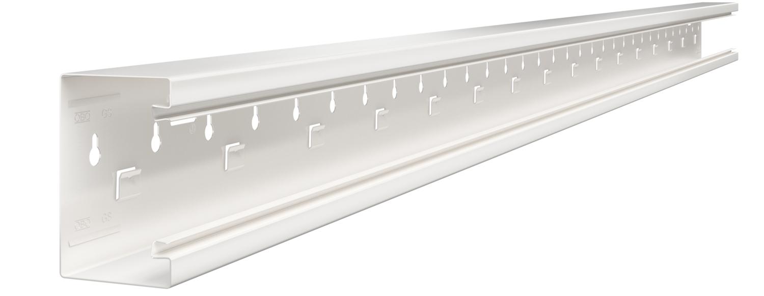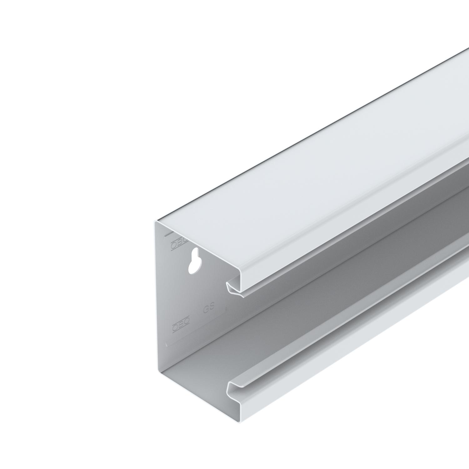 Produkt beskrivelseGS installationskanal til montering på væggen eller på fastgørelseskonsoller. GS installationskanalen er udstyret med selvkontakterende klemmeflige til montering af en skillevæg af stålplade. Potentialudligningen mellem kanalunderdelene foregår via koblingen. Mellem overdel og underdel sikres beskyttelsen og potentialudligningen af det patenterede, selvkontakterende kanaldæksel. Systemåbningen er reelt 76,5 mm. Overdelen skal bestilles separat.