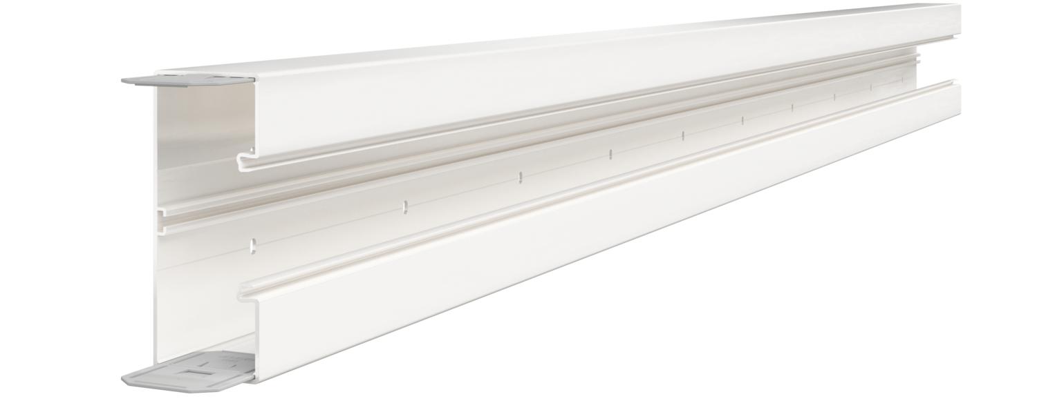 Produkt beskrivelseGK-installationskanal af blyfri polyvinylchlorid, egnet til montering direkte på væggen eller på vægkonsoller. Fastgørelsen kan foretages vha. perforeringen i kanalen. GK installationskanalen er udstyret med en C-profil i bunden til montering af en skillevæg af plast. I installationsdåserne i serien 71GD... kan alle kontaktprogrammer med bærering- og bærebøjlekonstruktion samt modul 45-installationskomponenter monteres. Systemåbningen er 76,5 mm. For hver kanallængde er et koblingspar formonteret på den ene side. Overdelen skal bestilles separat.