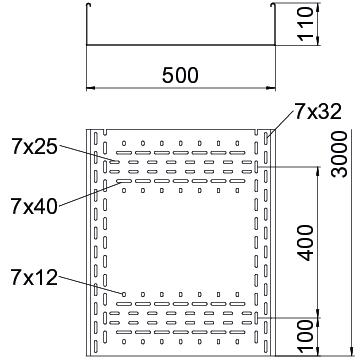 Produkt beskrivelseKraftigt trædefast kabelbakkesystem BKRS med bundperforering, i 110 mm sidehøjde.