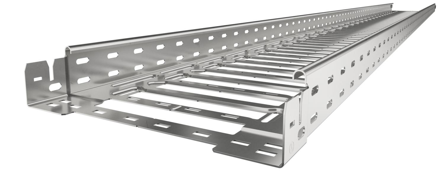 Kabelbakke med integreret snapfastgørelsessystem. Kabelbakkens effektive længde er 3.000 mm.