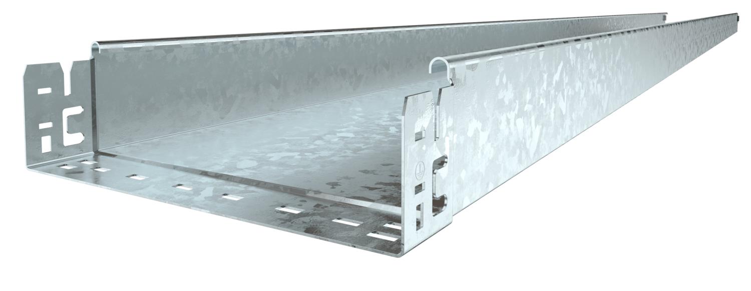 Produkt beskrivelseUperforeret kabelbakke med integreret snapfastgørelsessystem. Kabelbakkens effektive længde er 3.000 mm.