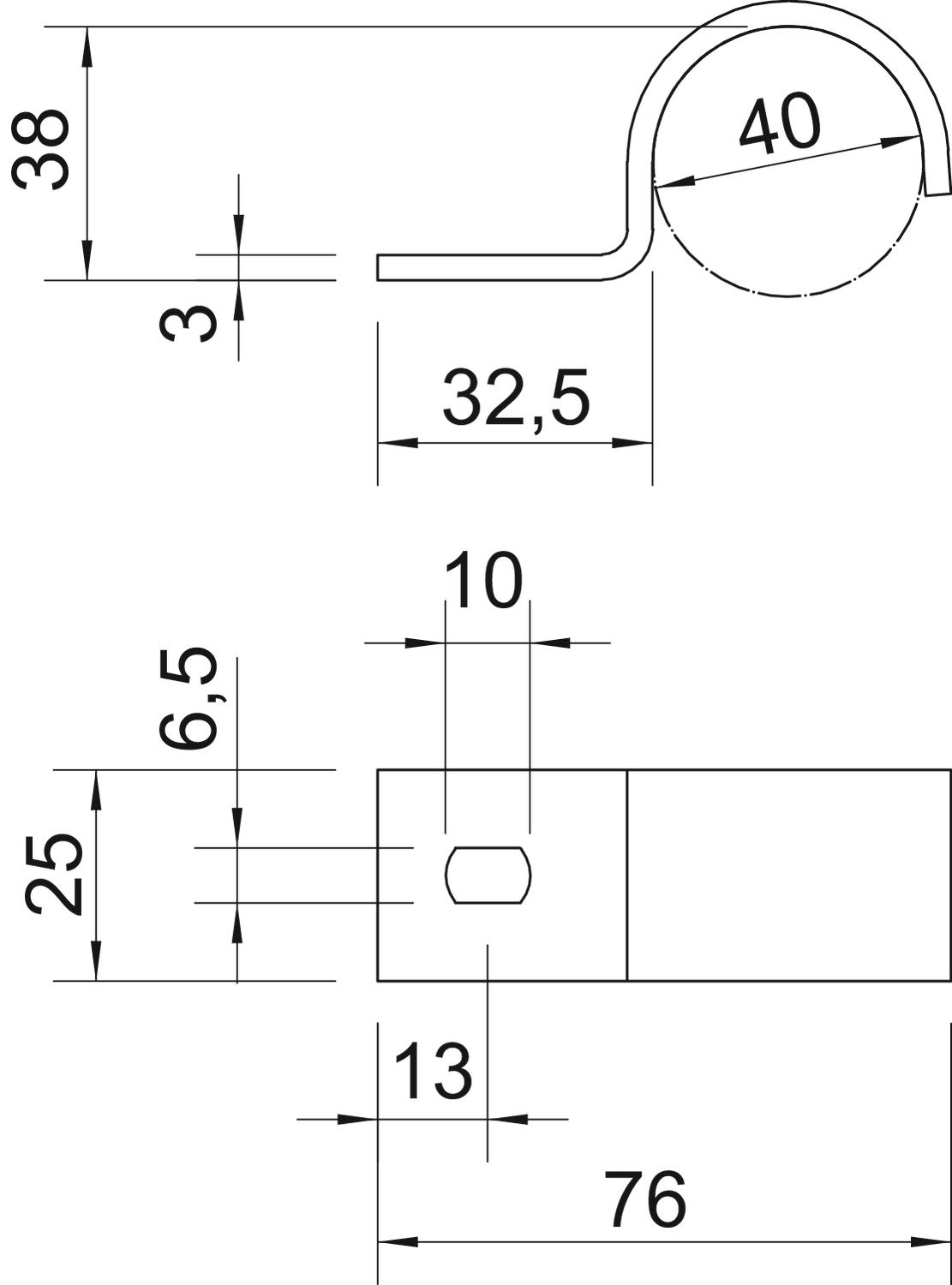 Produkt beskrivelseKabelbøjle med en laske 40 mm
