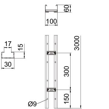 Produkt beskrivelseKabelstige med sidehøjde 60 mm med indsvejsede C30-profilsprosser, som er åbne opad. Sammenrullet sidevange til forstærkning og som kantbeskyttelse. Fastgørelse på konsollen ved hjælp af klemmestykker type LKS 40. Sprossens spaltemål er 16,5 mm, kabelbøjlen, der passer, er type BS-H....