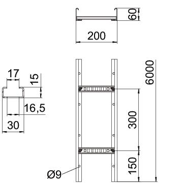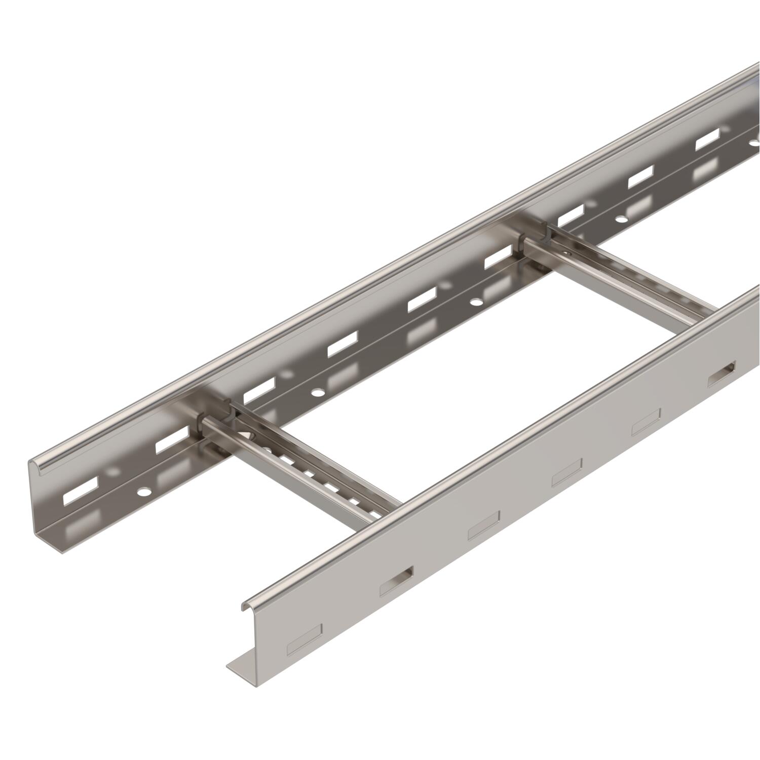 Produkt beskrivelseKabelstige med sidehøjde 60 mm med indsvejsede C30-profilsprosser, som er åbne opad. Sammenrullet sidevange til forstærkning og som kantbeskyttelse. Fastgørelse på konsollen ved hjælp af klemmestykker type LKS 40. Sprossens spaltemål er 16,5 mm, kabelbøjlen, der passer, er type 2056.