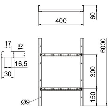 Produkt beskrivelseKabelstige med sidehøjde 60 mm med indsvejsede C30-profilsprosser, som er åbne opad. Sammenrullet sidevange til forstærkning og som kantbeskyttelse. Fastgørelse på konsollen ved hjælp af klemmestykker type LKS 40. Sprossens spaltemål er 16,5 mm, kabelbøjlen, der passer, er type 2056.