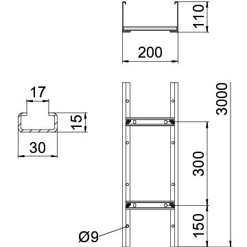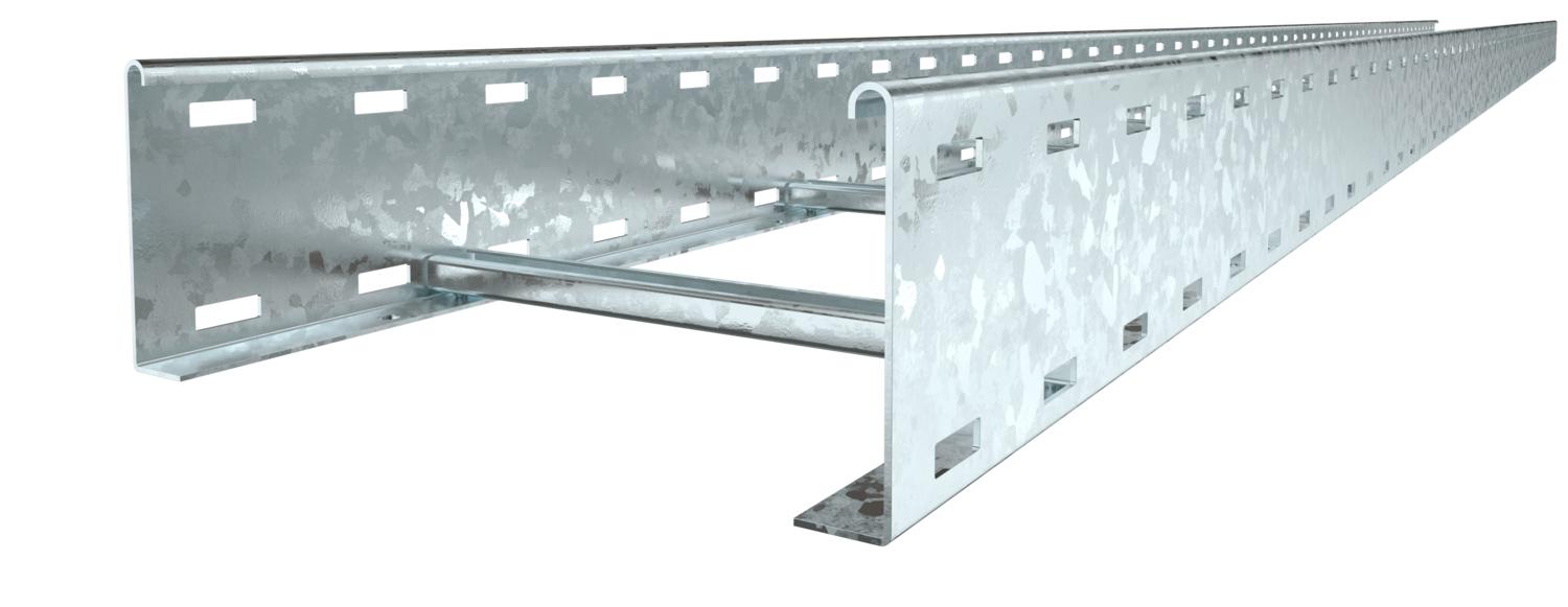 Produkt beskrivelseKabelstige med sidehøjde 110 mm med påsvejsede C30-profilsprosser, som er åbne opad. Sammenrullet sidevange til forstærkning og som kantbeskyttelse. Fastgørelse på konsollen ved hjælp af klemmestykker type LKS 40. Sprossens spaltemål er 16,5 mm, kabelbøjlen, der passer, er type 2056.
