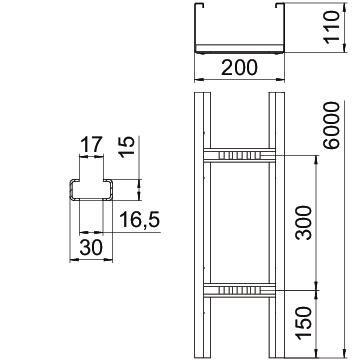 Produkt beskrivelseKabelstige med stor spændvidde med perforeret sidevange i 110 mm sidehøjde. Fastgørelse af kabler og ledninger med kabelbøjle type 2056.