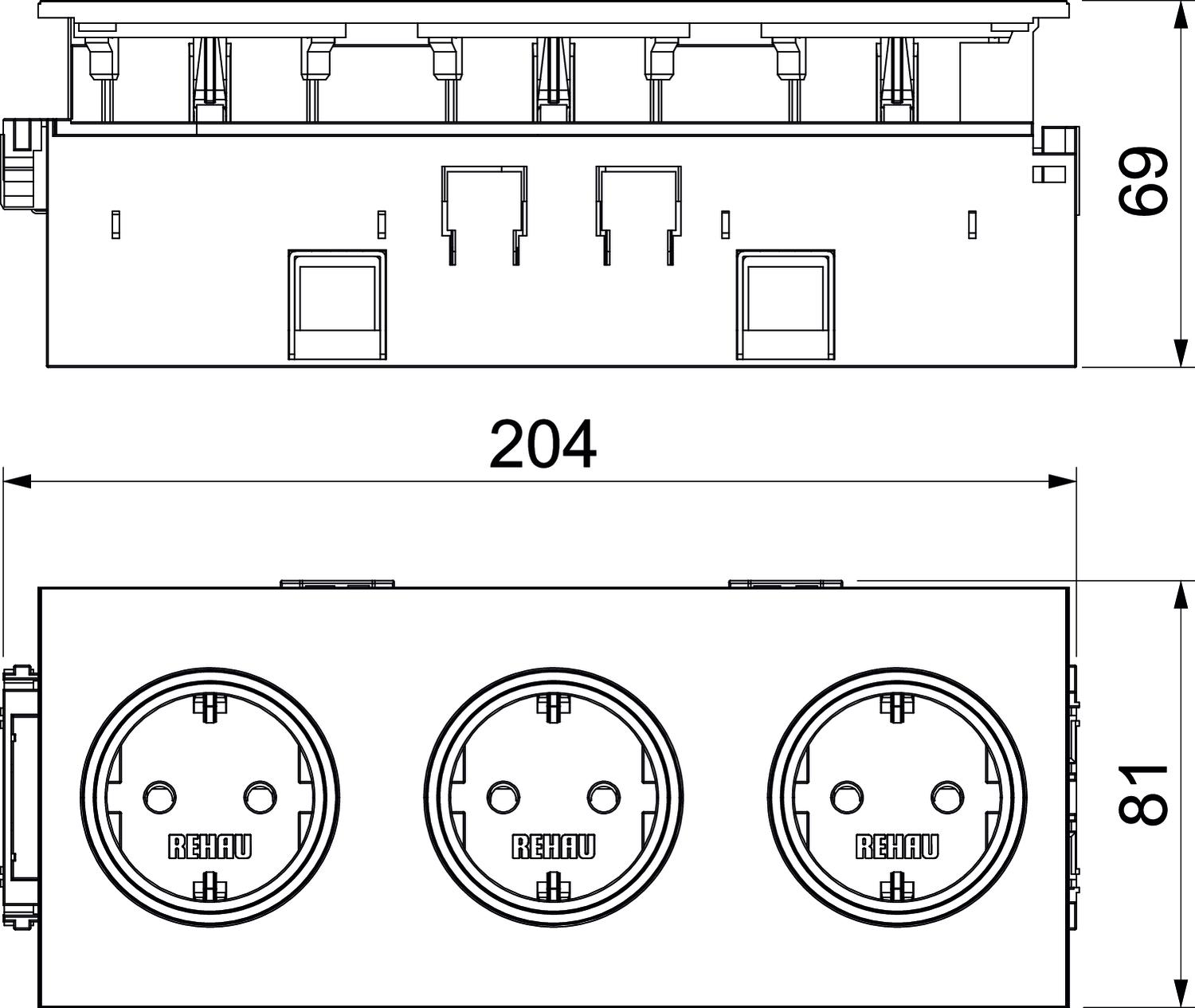 Produkt beskrivelse3-dobbelt kanalstikdåse Signa In med øget berøringsbeskyttelse, inkl. blænde (vha. stik-kombinationer er det muligt at forbinde maks. 3 Signa In-enheder) 16 A/250 V~.