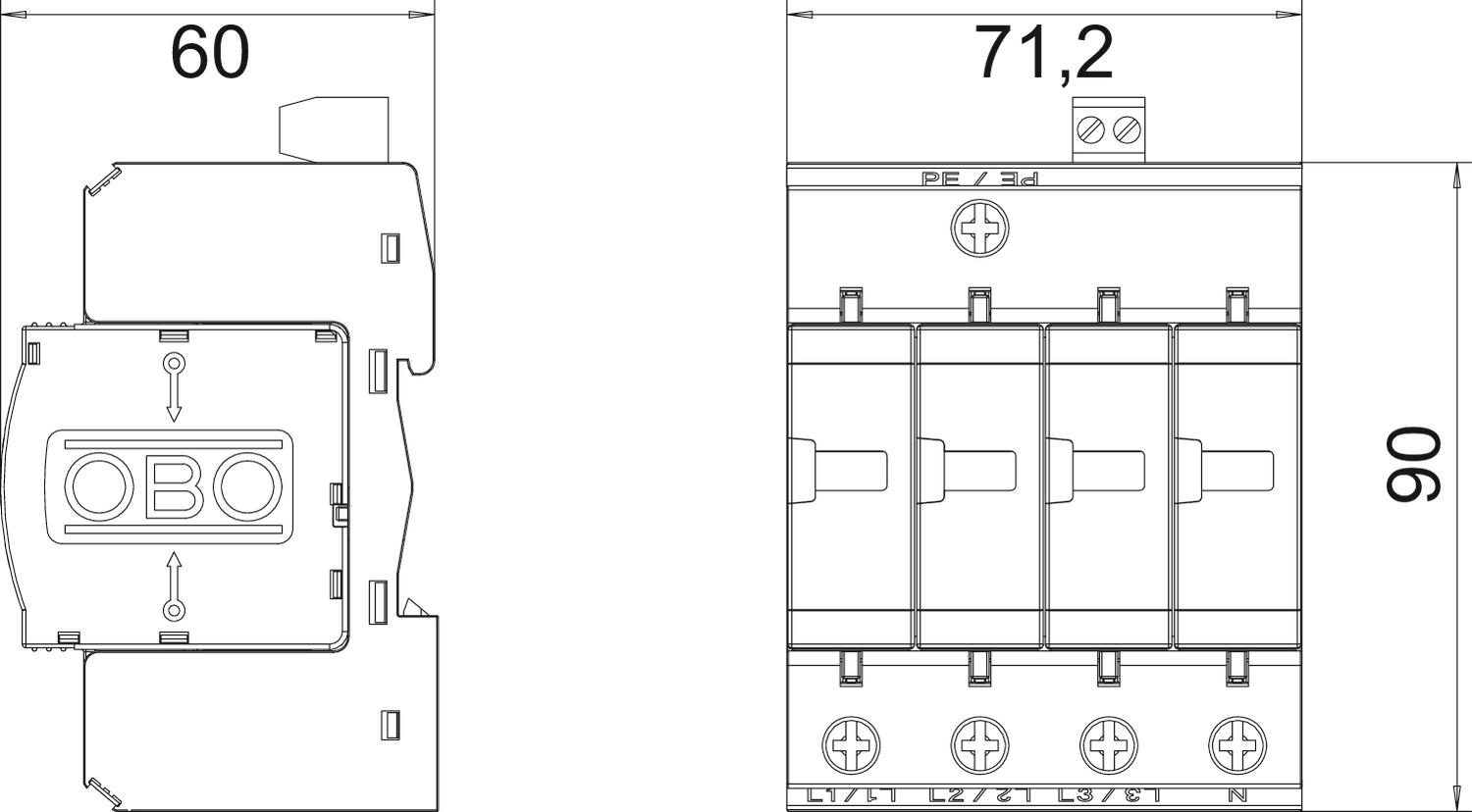 Produkt beskrivelseKombineret lynstrøms- og overspændingsafleder type 1+2
