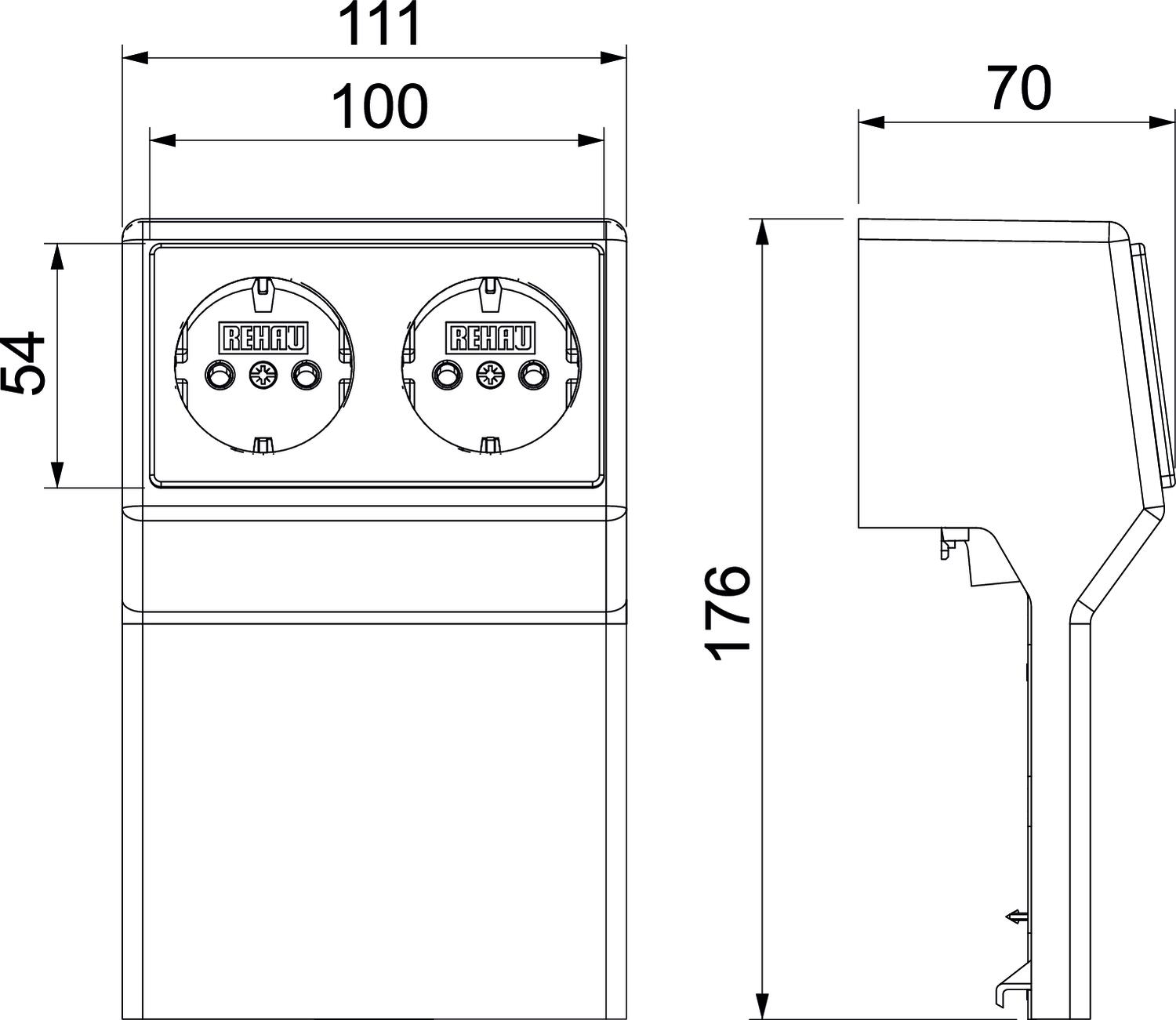 Produkt beskrivelseKomponentholder med dobbelt Schuko-stikdåse til kanalsystemet Rauduo.