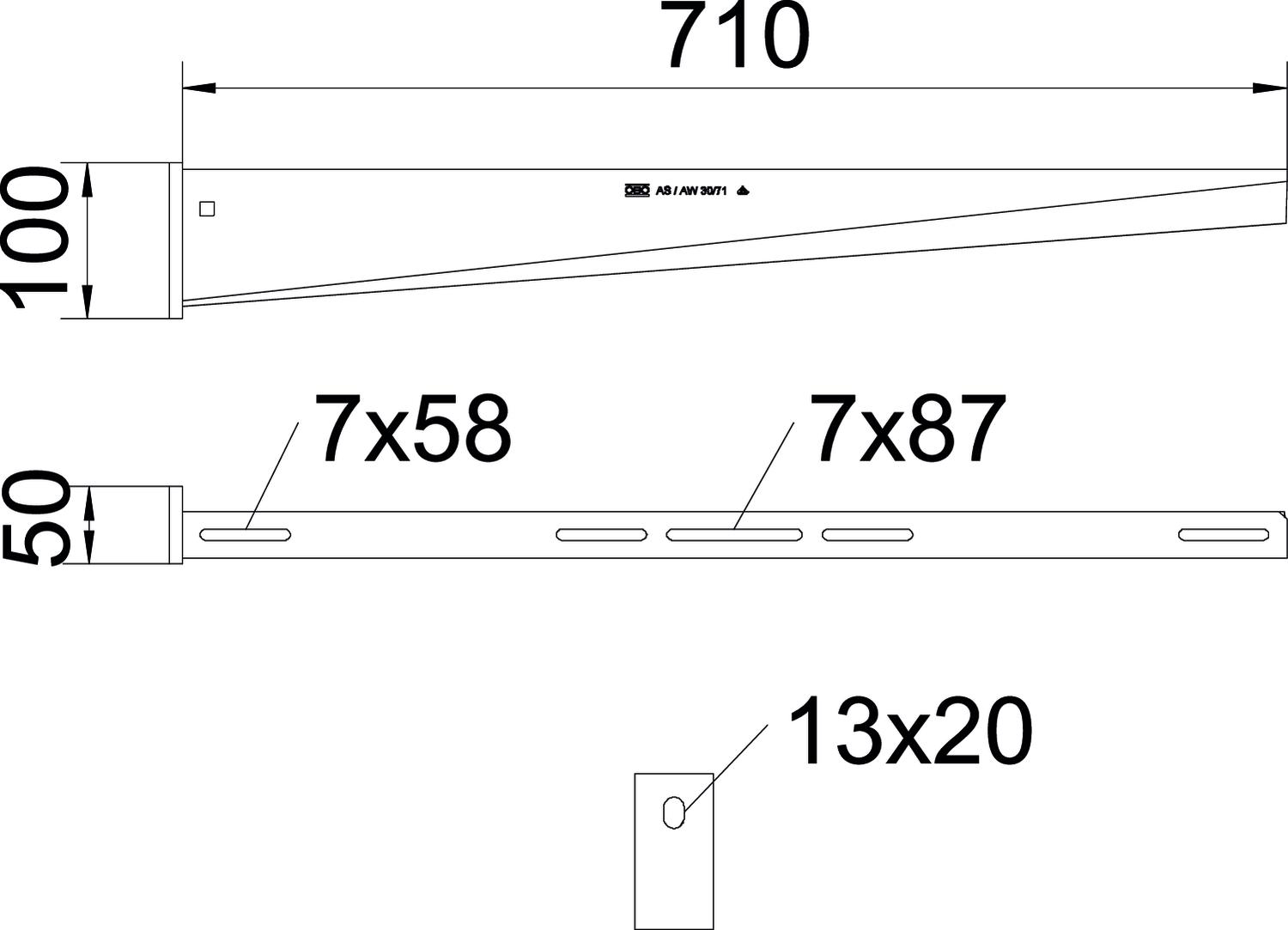 Bevarelse af funktionssikkerheden ved brand Nej Bredde 710 mm CO2 fodaftryk (GWP) fra vugge til port 5,4587 kg CO2e / 1 Styk Dimension B710mm F i kN 3 kN Farve zinc Huldiameter 13 mm Højde 100 mm Længde 50 mm Mål A 50 mm Mål B 710 mm Mål H 100 mm Materiale Stål Overflade Varmgalvaniseret Rustfrit stål, bejdset Nej Udførelse Væg- og pendelkonsol Vinkelområde maks. 90 mm Vinkelområde min. 90 mm Tekniske data