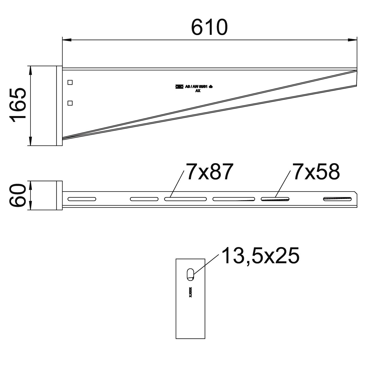 Bevarelse af funktionssikkerheden ved brand Nej Bredde 610 mm CO2 fodaftryk (GWP) fra vugge til port 16,9747 kg CO2e / 1 Styk Dimension 610 mm F i kN 5,5 kN Farve specialstål Huldiameter 13,5 mm Højde 165 mm Længde 60 mm Mål A 60 mm Mål B 610 mm Mål H 165 mm Materiale Rustfrit stål 1.4301 Overflade blank, efterbehandlet Rustfrit stål, bejdset Ja Udførelse Væg- og pendelkonsol Vinkelområde maks. 90 mm Vinkelområde min. 90 mm Tekniske data