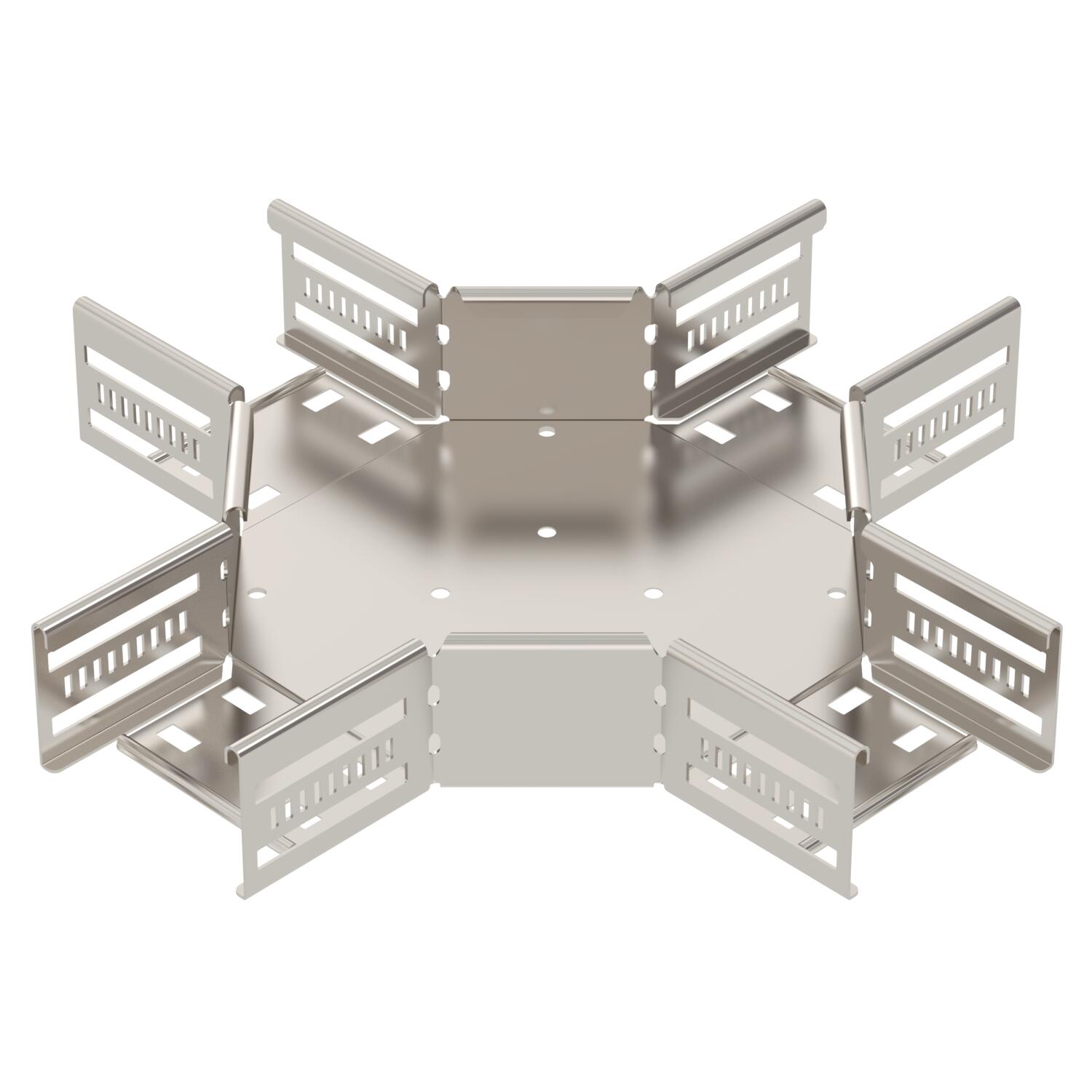 Produkt beskrivelseKryds til fremstilling af en vandret forgrening, formdel til kabelbakker, der kan klikkes på plads eller skrues, sidehøjde 60 mm. Skrueløs montering med dobbeltklemmer eller skrueforbindelse med flade rundskruer FRS og kombimøtrikker M6. Til indendørs og udendørs brug. Fastgøringsmateriale skal bestilles separat.