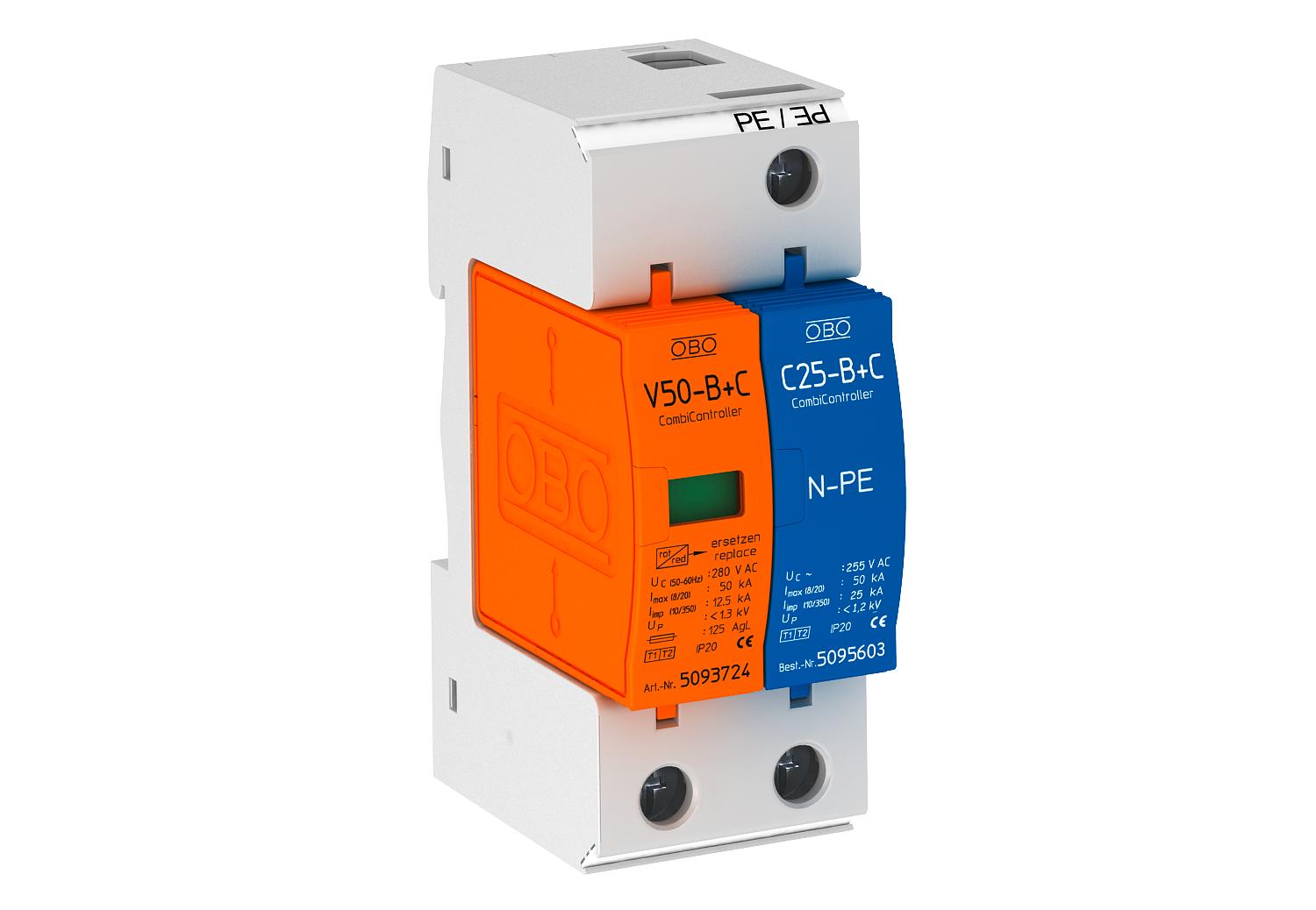 Produkt beskrivelseKombiafleder, lyn- og overspændingsafleder type 1+2 iht. nach DIN EN 61643-11.