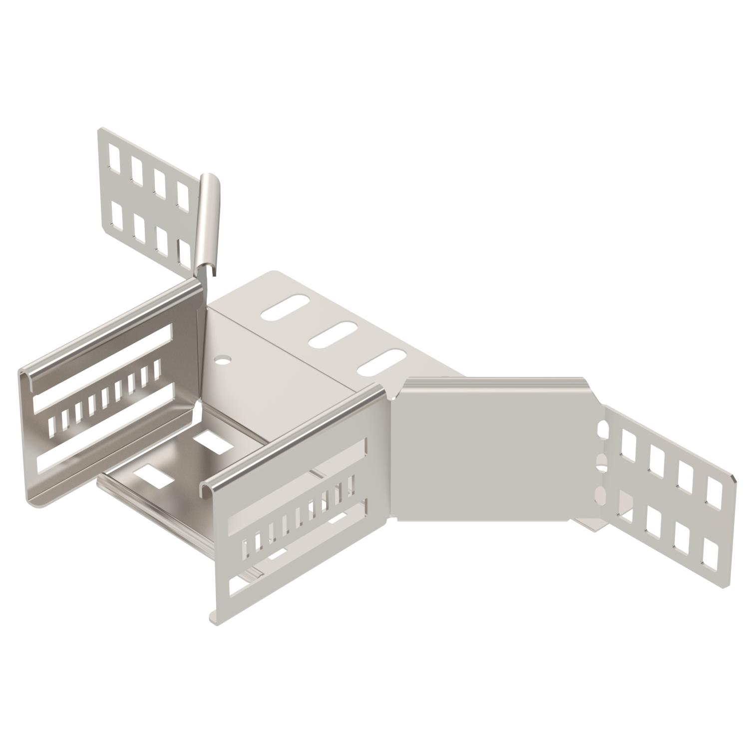 Produkt beskrivelseMonterings-forgreningsstykke til fremstilling af en vandret forgrening eller krydsning, formdel til kabelbakker, der kan klikkes på plads eller skrues, sidehøjde 60 mm. Skrueløs montering med dobbeltklemmer eller skrueforbindelse med flade rundskruer FRS og kombimøtrikker M6. Til indendørs og udendørs brug. Fastgøringsmateriale skal bestilles separat.