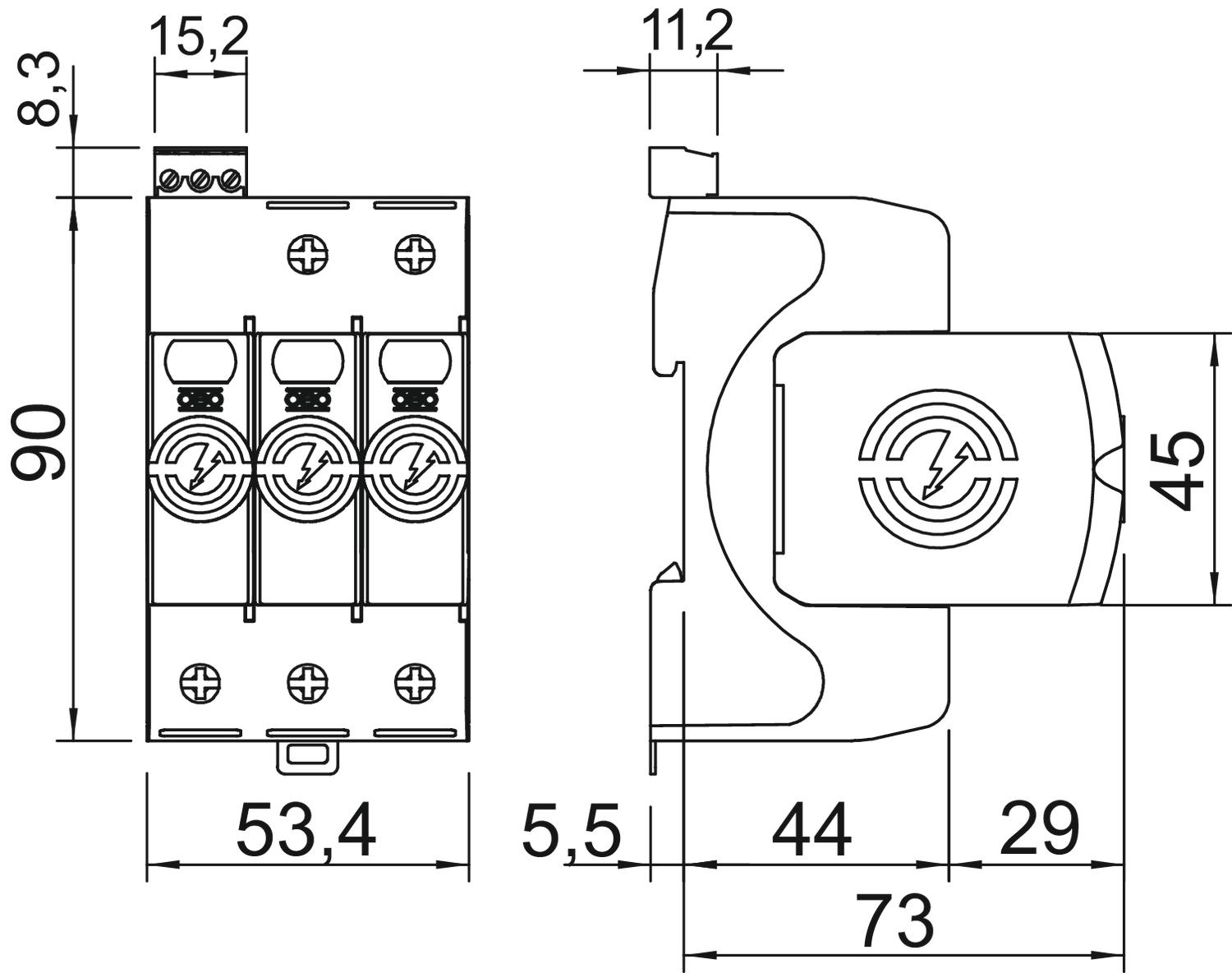 • Modulopbygget stikbar afleder med afbryder og optisk statusindikator