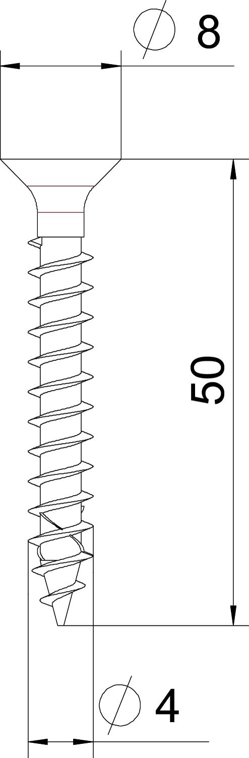 Dimension 4x50mm Dobbeltgænget Nej Drevstørrelse TX 20 Hoveddiameter 8 mm Hærdet Nej Længde 50 mm Mål D 4 mm Mål L 50 mm Materiale Rustfrit stål Overflade blank, efterbehandlet Skruesystem Torx Topform Undersænkhoved - Alle typer