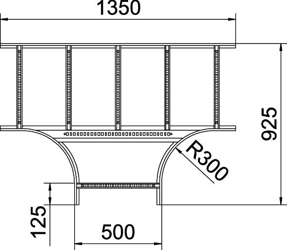 Produkt beskrivelseT-stykke, vandret med svejset sprosse til alle typer kabelstiger med en sidehøjde på 110 mm.