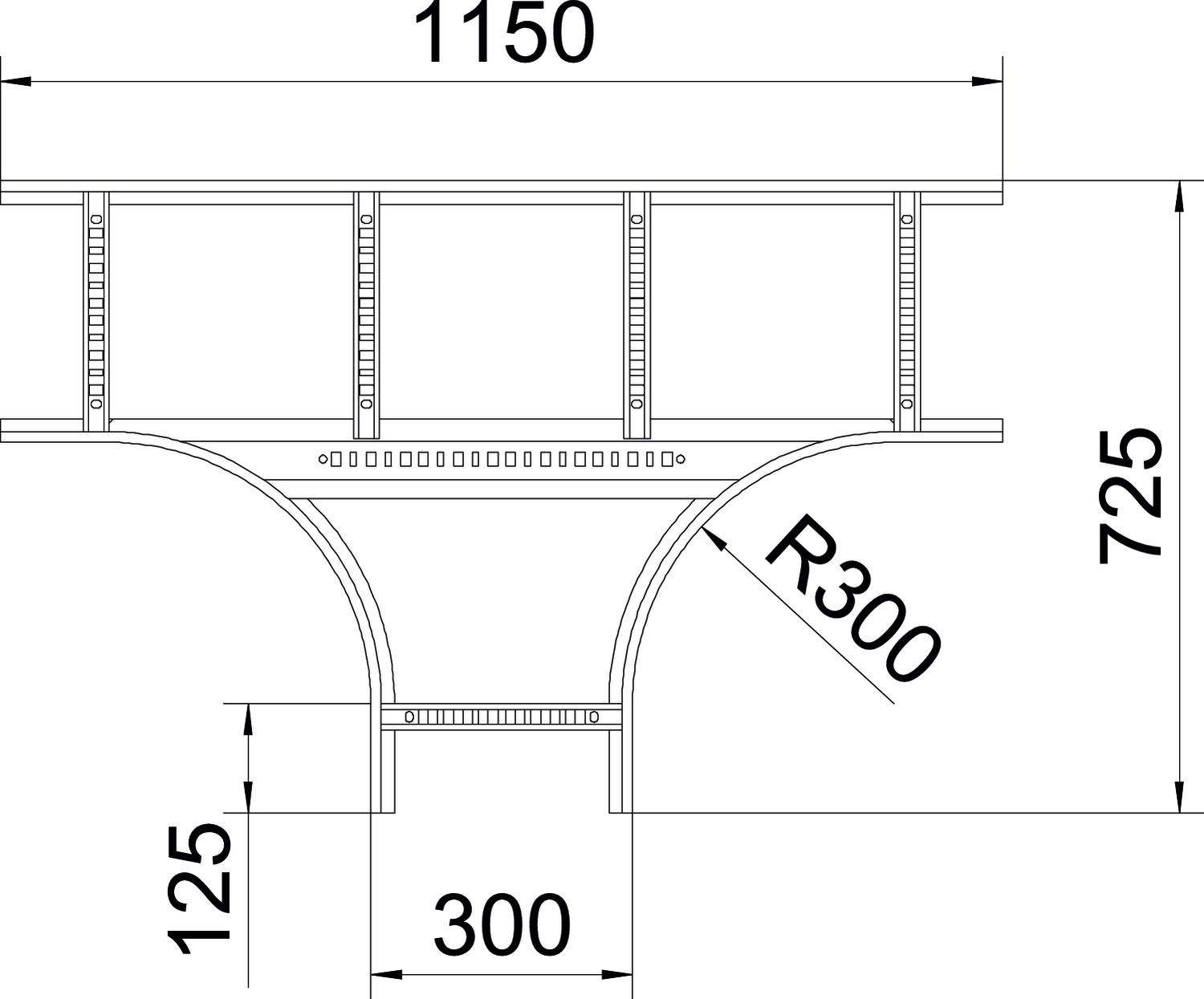 Produkt beskrivelseT-stykke, vandret med svejset sprosse til alle typer kabelstiger med en sidehøjde på 110 mm.