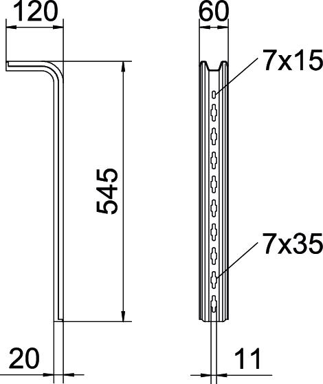 Bevarelse af funktionssikkerheden ved brand Nej Bredde 60 mm CO2 fodaftryk (GWP) fra vugge til port 1,8863 kg CO2e / 1 Styk Dimension L545mm Farve zinc Højde 120 mm Længde 545 mm Mål L 545 mm Materiale Stål Overflade Varmgalvaniseret Udførelse S-profil Tekniske data
