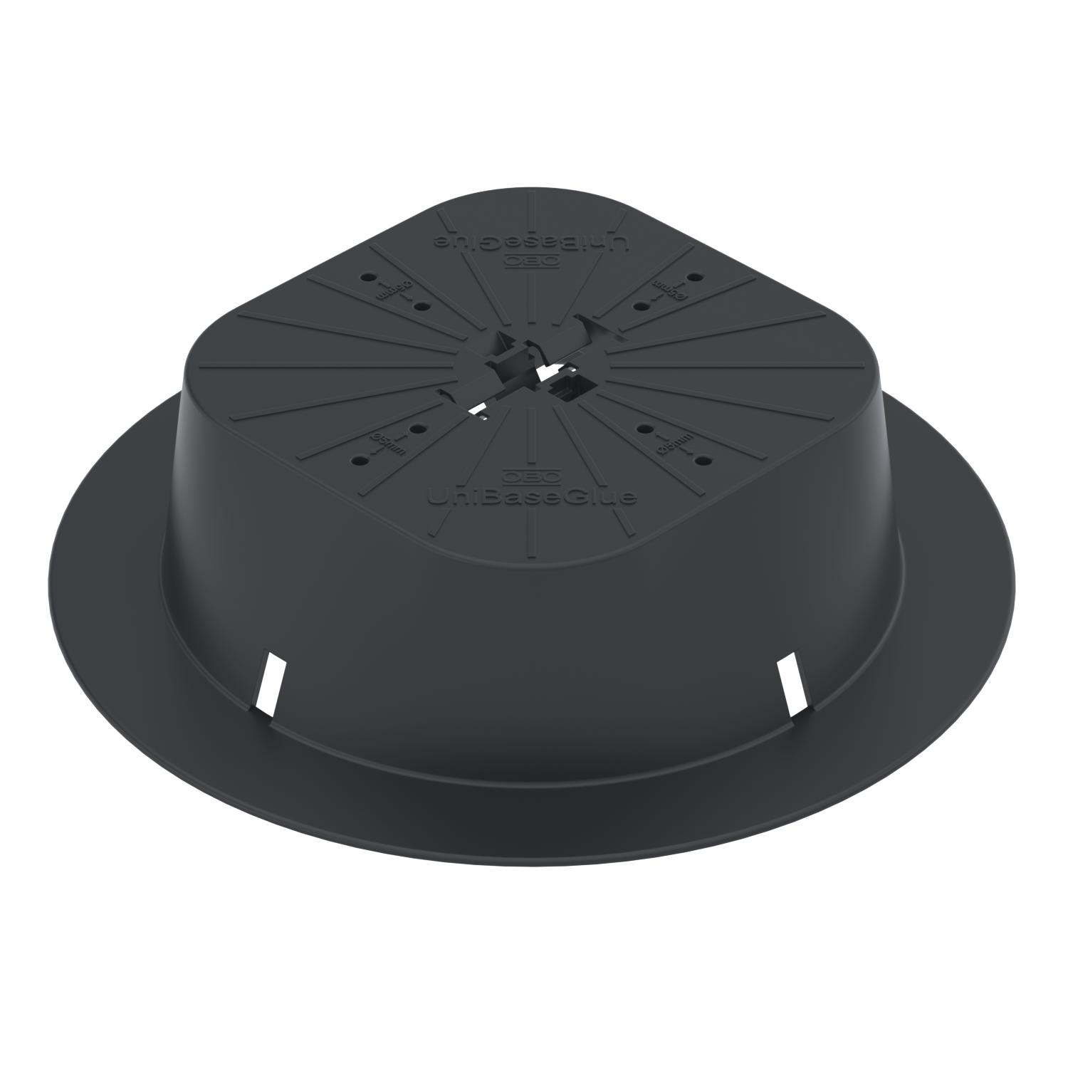 Produkt beskrivelseUniversalfod UniBase til fastklæbning på flade tage. Kan anvendes til ledningsføring med gitterbakker i forbindelse med tagledningsholder 165 MBG. Klæbemanchetter skal vælges, så de passer til underlaget.