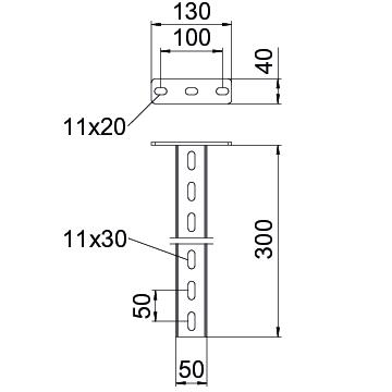 Produkt beskrivelseLoftpendel (U-profil) med målene 50x30 mm med påsvejset topplade. Til fastgørelse på vandrette betondæk og jernbjælker. Pulverlakeret i dyb sort (RAL 9005). Fra konsolbredden 400 mm eller ved montering af konsollen ved enden af loftpendlen anbefales anvendelse af et afstandsstykke af typen DSK 25.
