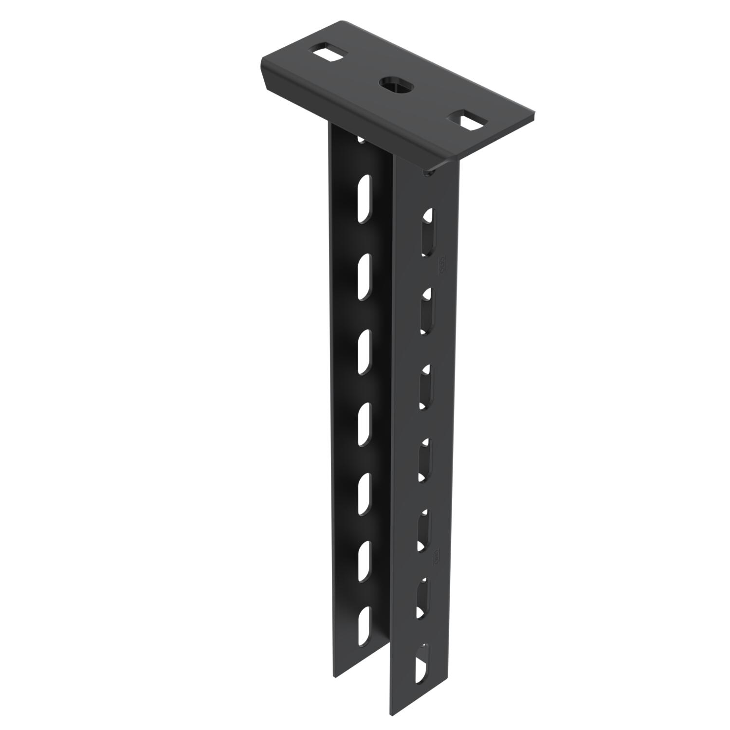 Produkt beskrivelseSuspended support made from U profile with welded-on head plate, perforated to 3 sides, for the creation of support constructions for cable trays. Suitable for mounting on horizontal concrete ceilings and steel supports. Wall and support bracket can be mounted on both sides of the U suspended support. Spacer DSK to insert, from bracket width 400 mm or when mounting the bracket on the end of the suspended support. With black powder coating.