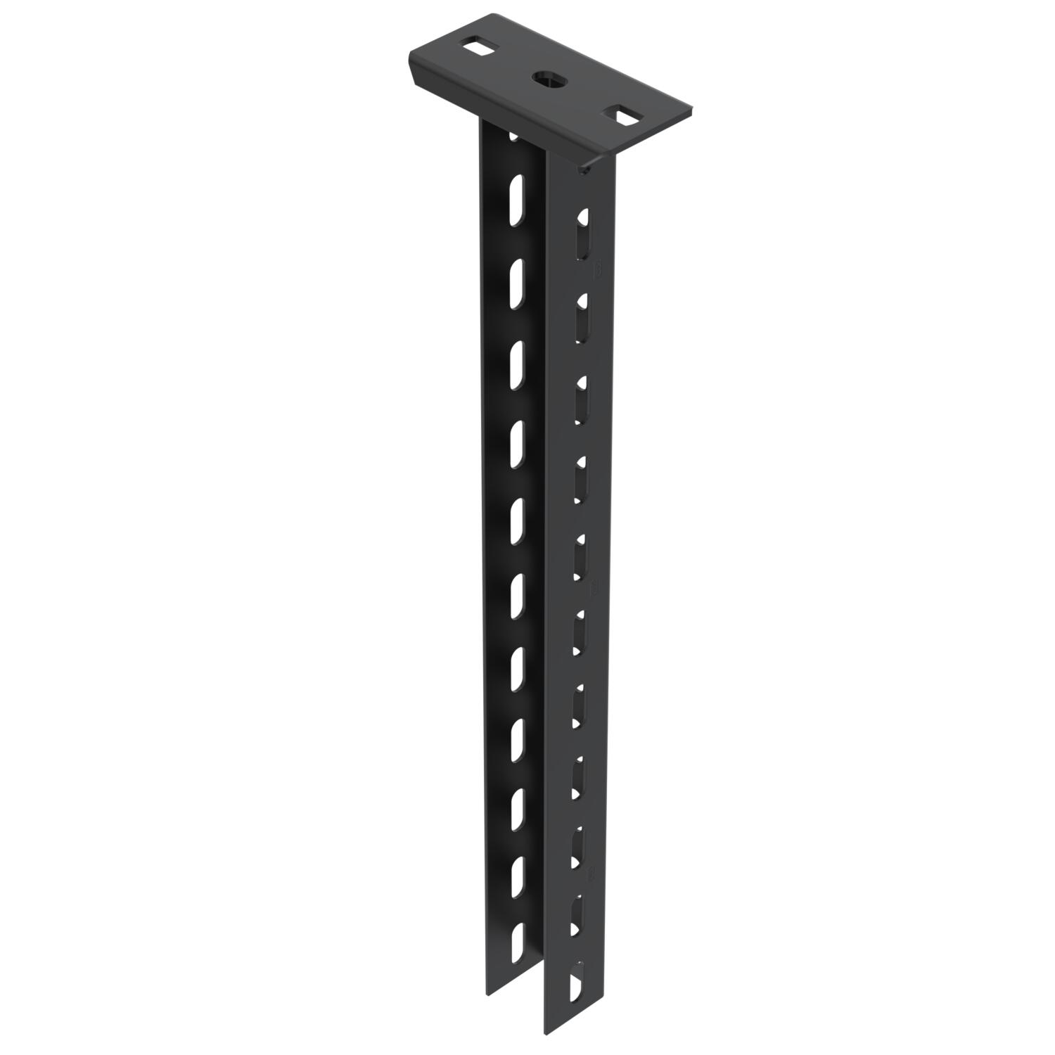 Produkt beskrivelseSuspended support made from U profile with welded-on head plate, perforated to 3 sides, for the creation of support constructions for cable trays. Suitable for mounting on horizontal concrete ceilings and steel supports. Wall and support bracket can be mounted on both sides of the U suspended support. Spacer DSK to insert, from bracket width 400 mm or when mounting the bracket on the end of the suspended support. With black powder coating.
